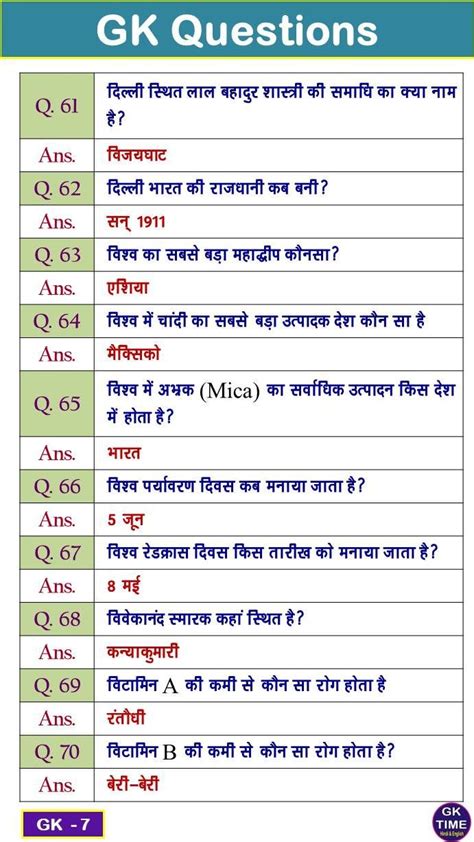 Gk Questions With Answers Class 7 QEUST