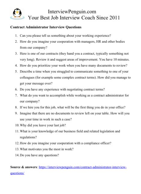 Interview Questions And Answers For Contract Administrator Position - Questions & Answers