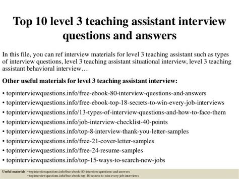 Interview Questions And Answers For Level 2 Teaching Assistant - Questions & Answers. Instead, they’re about finding out if you would be a right fit for the school. Reviewing common special needs teaching assistant interview questions and sample answers is one of the most effective ways to prepare for a job interview.