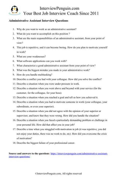 Here are eight common administrative assistant questions you may be asked in an interview: Prepmycareer has designed an exclusive post that provides ten unique and impressive sample answers for this interview question. 17) what is your best strength? Part of a pa's job is to schedule meetings for their managers. Here are eight common administrative assistant questions you may be asked in an interview: A sample answer to this question is, “as an administrative assistant, i ensure that executives can focus on important tasks by providing support to them. What do you think the role of administrative assistant serves in the office? I believe the administrative assistant is an important element of a team. they assist the individuals they support by delivering critical information as needed and ensuring that everything goes well in addition to keeping up with daily activities such as filing, organizing, and managing schedules. 2. Administrative assistants do not have a small role by any means. Refer to this post here, to strengthen your preparation. More administrative assistant job interview question 13.