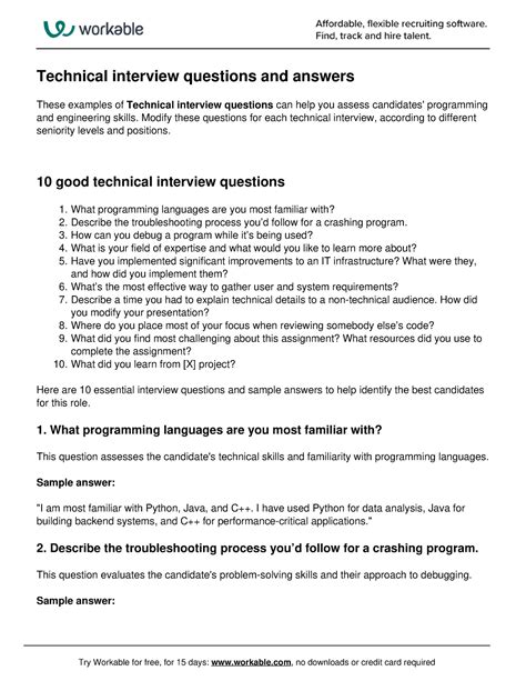 Explain the benefits of working in an agile environment and the drawbacks as well. We rank your applicants according to test scores certified by our experts Remember not to panic and answer all the technical interview questions confidently and smartly. Your skills and expertise from your classes, assignments, and internships are put to use here. They can be used to test general knowledge within that industry or to determine a candidate's hard skills. Top 70 micro focus alm quality center qc interview questions and answers. 30 common technical interview questions. Whether you are preparing to interview a candidate or applying for a job, review our list of top technical support interview questions and answers. Begin by discussing your present role, highlighting main, relevant achievements and responsibilities. With this question, the interviewers are looking to test your technical expertise.