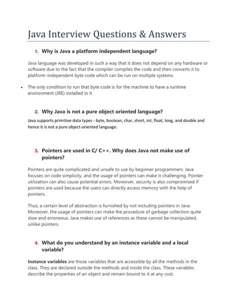 Following is the list of most frequently asked top interview questions for freshers: Other java interview questions for freshers. 1) tell me something about yourself. Even you are well known for it; By writing a class that expands java.lang, thread class. Java is a platform independent language. E.g., the string class in java. It is mentioned in the top java programming interview questions and answers. Difference between heap and stack memory in java. Give an example of use of pointers in java class.