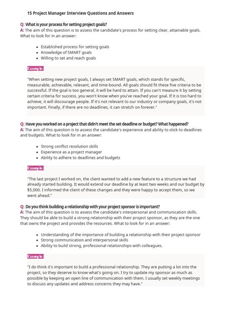 Project Manager Interview Questions And Answers Pdf - Questions & Answers. This question — along with the ones listed below — is a chance for the hiring company to see how you’d fit in if hired. This question will show you their priorities and how determined a.