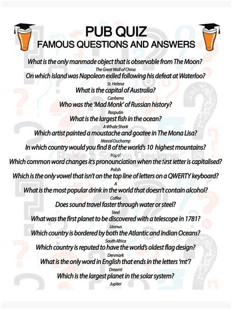Pub Quiz Questions With One Letter Answers - Quiz Questions And Answers. Unlike some of our other quizzes we do not allow any spelling mistakes on this one. For the best quiz night, check out our free pub quizzes which are regularly updated by the team at challenge the brain.