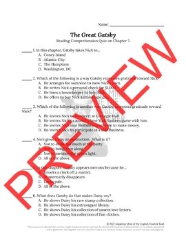 Quiz Questions For The Great Gatsby Chapter 5 - Quiz Questions And Answers
