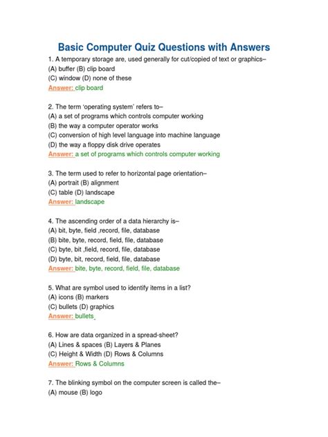 Quiz Questions In Computer - Quiz Questions And Answers