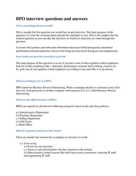 Trainer Interview Questions And Answers In Bpo - Questions & Answers. Here are few bpo interview questions and answers that give you a basic idea about bpo. i was hired at acme inc.